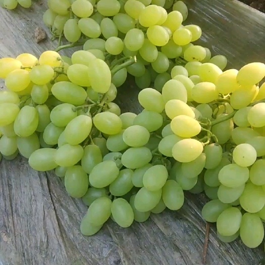 果穗大,呈圆锥形或圆柱形,平均穗重达630克。果皮黄绿色,中等厚度,果肉硬而脆。其果粒尤为突出,呈卵圆形,颗粒大且均匀,平均粒重11克,最大可达20克,形状美观,商品性极佳。口感清甜爽脆,风味甘甜爽口,可溶性固形物(含糖量)可达16.2%,一丝酸味也没有,风味纯正。