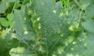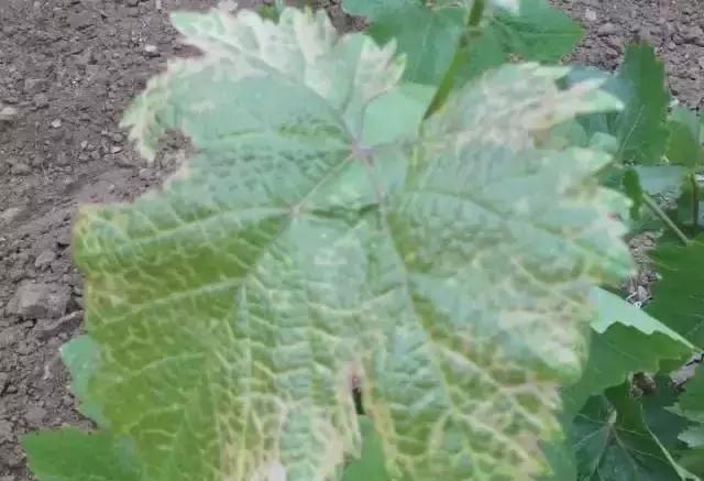 这种病毒病在欧洲品种和大多数美洲品种上呈潜隐性侵染,不易被发现,但在沙地葡萄的叶片上症状明显。